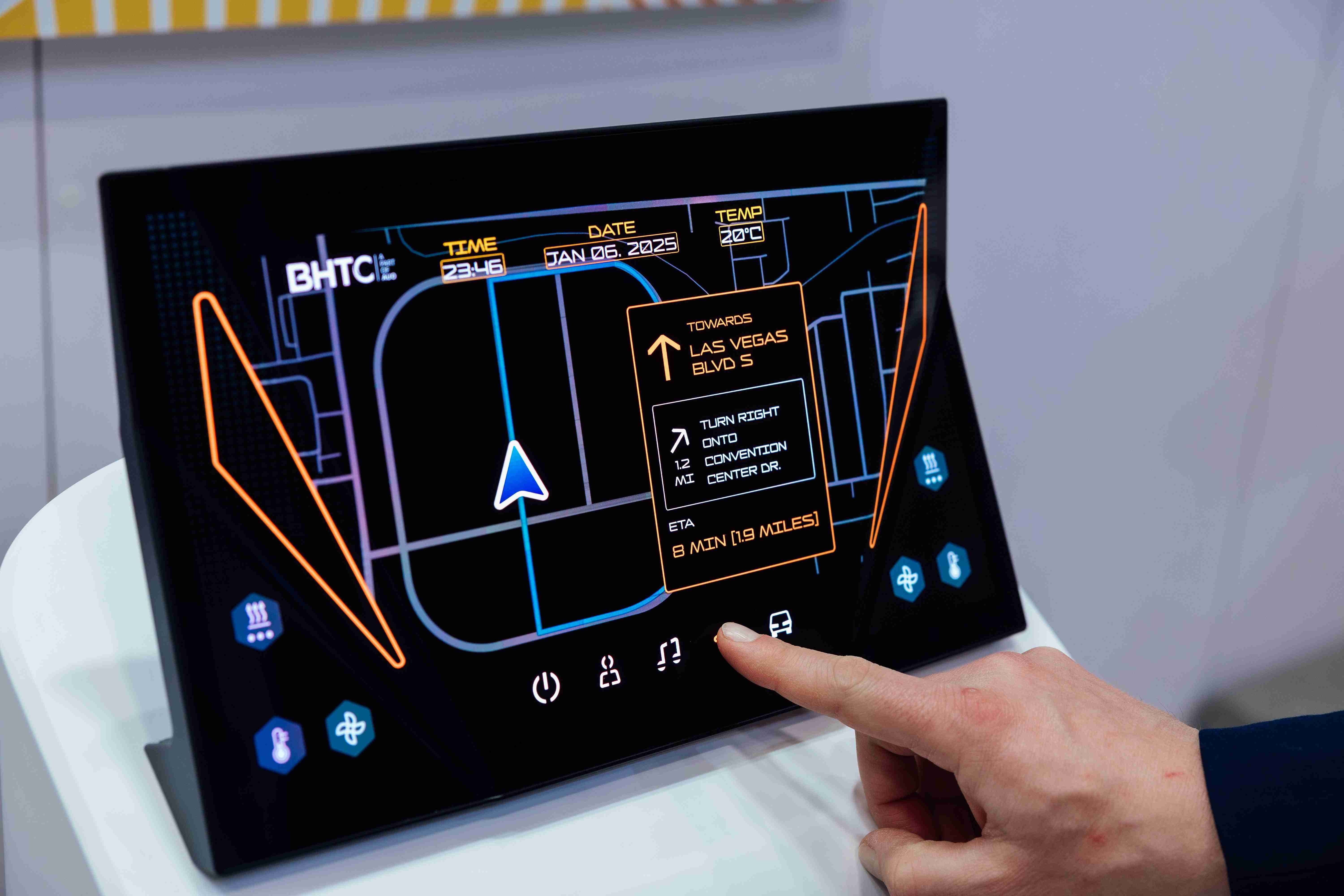Micro LED可折迭触控显示器(Haptifold Display)结合BHTC多年HMI设计经验,,,整合中控台和温度控制功能,,,,以优美的曲面和独特的外型助力车内设计美学,,,在辅以触控回馈下,,为驾驶带来更直觉的使用体验。。。
