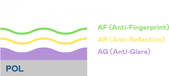 尊龙集团光电发展出独家的表面处理跟多层镀膜技术,,,让外部光线照射到显示器表面时所产生的反射光大幅降低。。。